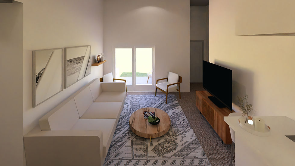 After defining the aesthetic and what furniture pieces she needed, we created a layout and took that into 3D.